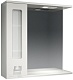Комплектация: Зеркальное полотно с нижней полкой и козырьком с встроенным галогеновым светильником и выключателем. Слева распашной ящик с внутренними полками.