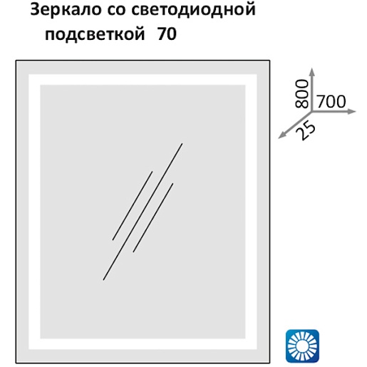 Комплектация: влагостойкое зеркальное полотно, LED подсветка.
