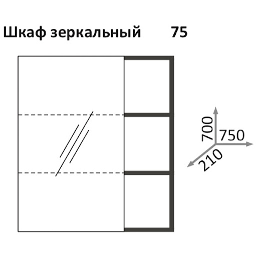 Описание: влагостойкое зеркальное полотно, шкафчик, открытые полки.