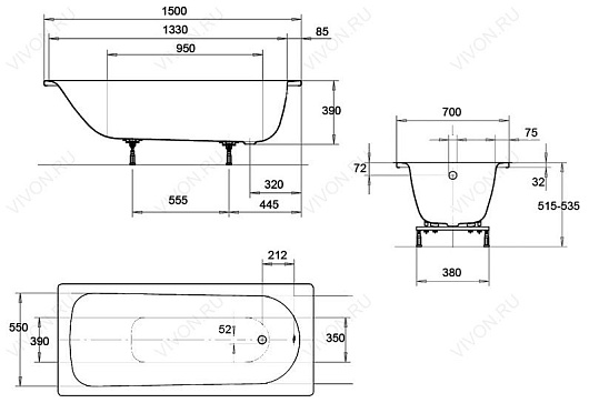 Kaldewei Стальная ванна "EUROWA 310" 150х70x39см.