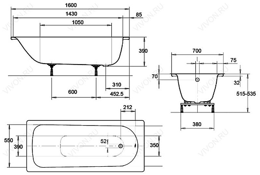 Kaldewei Стальная ванна "EUROWA 311" 160х70x39см.