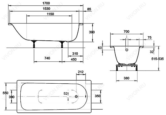 Kaldewei Стальная ванна "EUROWA 312" 170х70x39см.