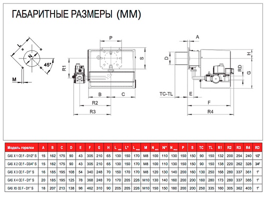 Газовая горелка GAS X 4 CE F + R. CE-CT D1"-S одноступенчатая