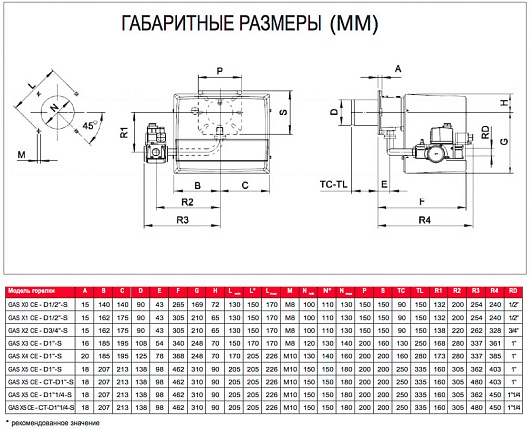 Газовая горелка GAS X5 CE TL + R. CE-CT D1"1/4-S одноступенчатая