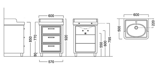 Тумба под раковину Pompei 60, 3 ящика, белая
