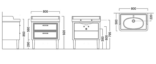 Тумба под раковину Pompei 80, 2 ящика, белая