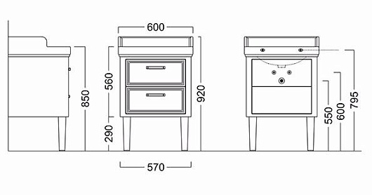 Kerama Marazzi Тумба под раковину Pompei 60, 2 ящика, белая