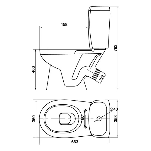 Керамин Унитаз-компакт Омега с жестким сиденьем, графит