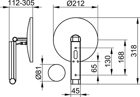 - настенная модель на кронштейне с шарниром, регулируется в трех плоскостях,
