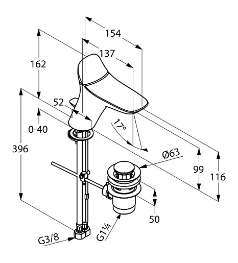 Высота излива, мм: