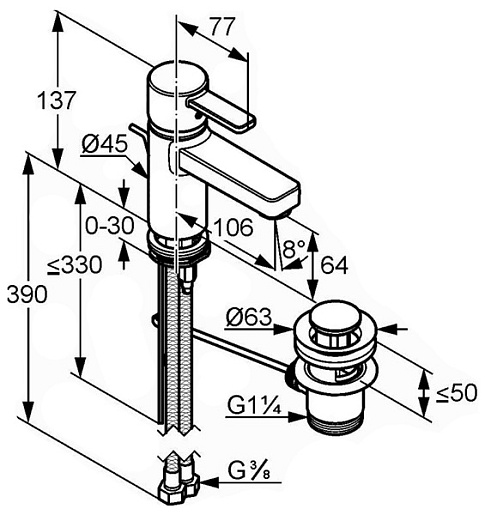 Высота излива, мм: