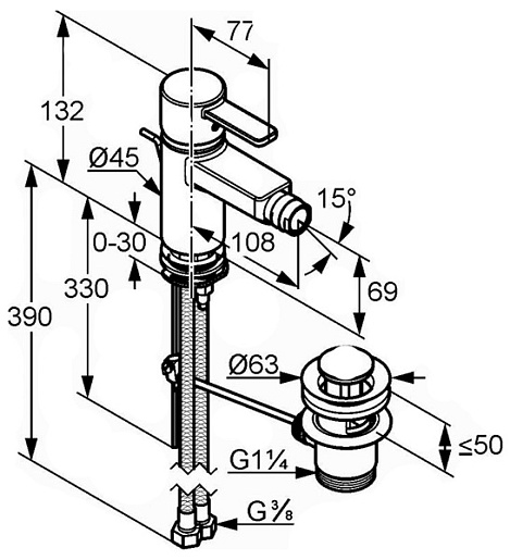 Высота излива, мм: