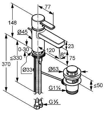 Высота излива, мм:
