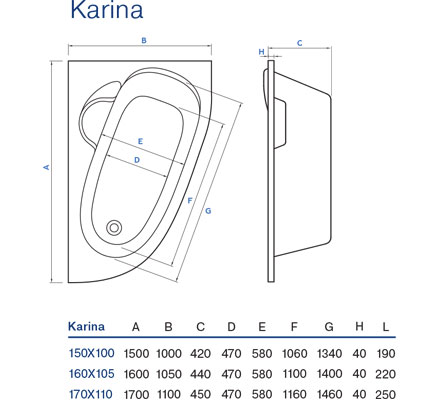 Koller Pool Акриловая ванна Karina 150x100 L