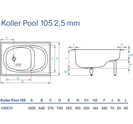 Koller Pool Стальная ванна 105x70E с сиденьем