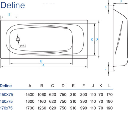 Koller Pool Стальная ванна Deline 170х75 с отв. под ручки
