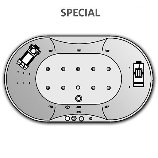 - гидро-аэромассажная система (10 форсунок типа MAGIC-JET) с функцией “пульсирующий-амплитудный режим”