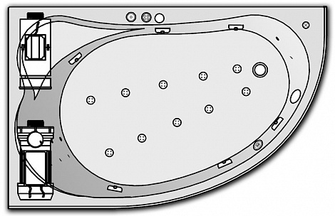 - Гидро-аэромассажная система (10 форсунок типа MAGIC-JET) с функцией “пульсирующий-амплитудный режим