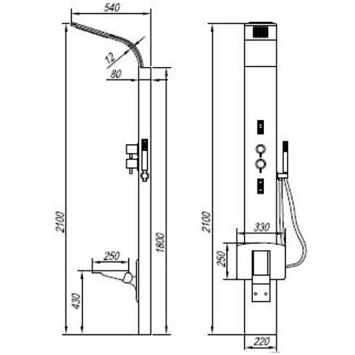 Душевая панель ZONDA 2100 3FT Размер: 2100х220х80 мм