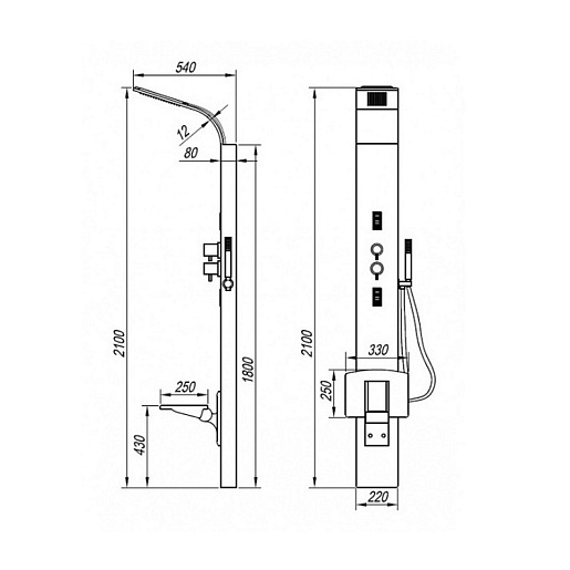 Душевая панель ZONDA 2100 3FT Размер: 2100х220х80 мм