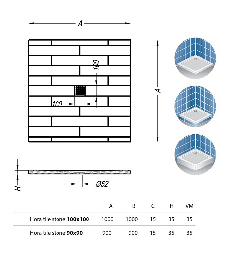 Kolpa San Поддон для душа Hora tile stone 100x100 White
