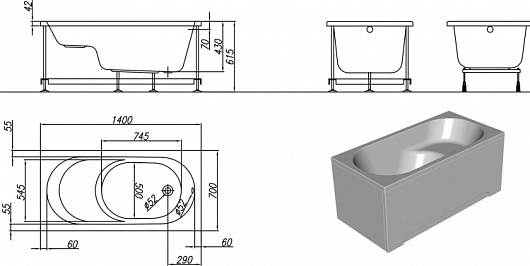 Размеры (ДxШxВ): 1400 x 700 x 430-615 мм
