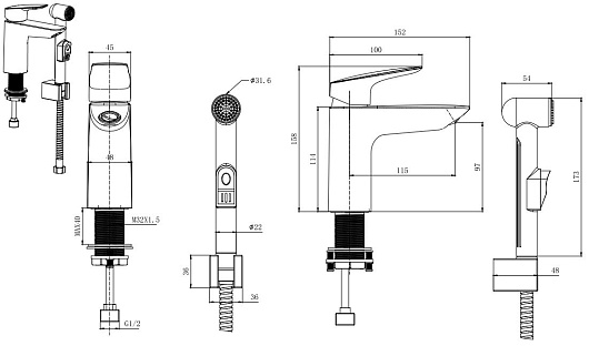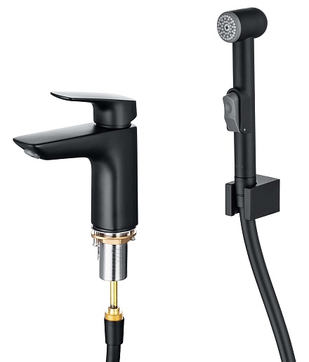 Aquatek Комплект для раковины Вега AQ1012MB с гигиеническим душем, матовый черный