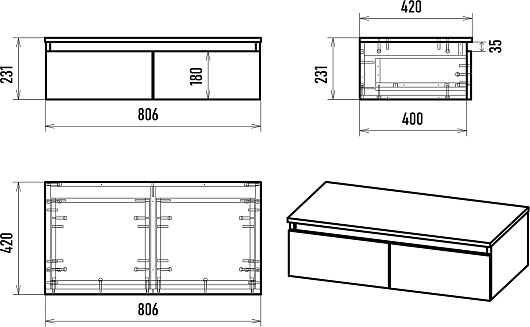 - 2 выдвижных ящика.