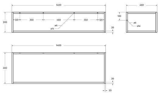 Размеры (ШxВxГ): 1400x300x460 мм.