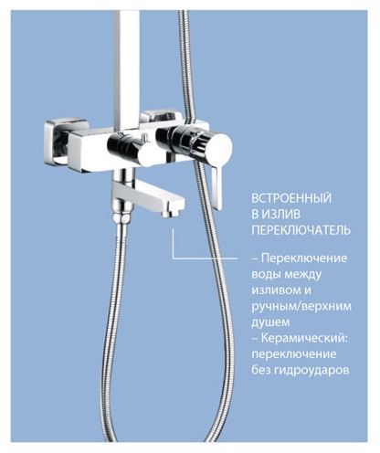 Смеситель, лейка, шланг, штанга, верхний душ, крепление