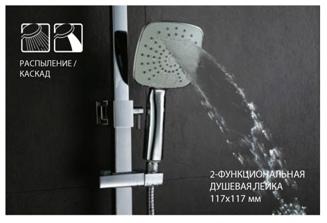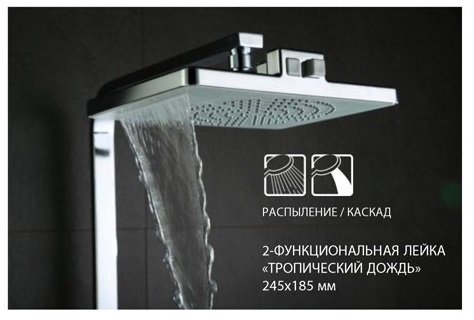 - 2-х функциональная верхняя поворотная душевая лейка «Тропический дождь» 245х185 мм.