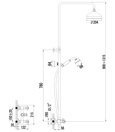 Верхний душ, кронштейн