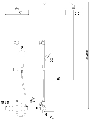 Термостат, лейка, шланг, штанга, верхний душ, крепление