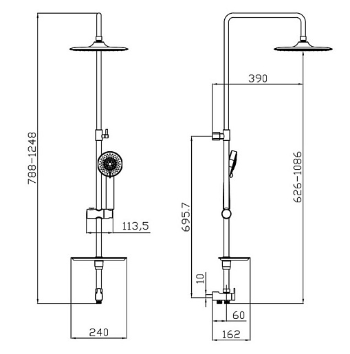 - ручной душ (5 режимов: распыление, массаж, туман, распыление и массаж, распыление и туман) 105мм,
