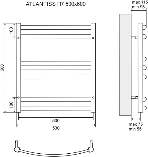 Комплектация: полотенцесушитель, ТЭН, терморегулятор с кабелем и вилкой, крепеж.