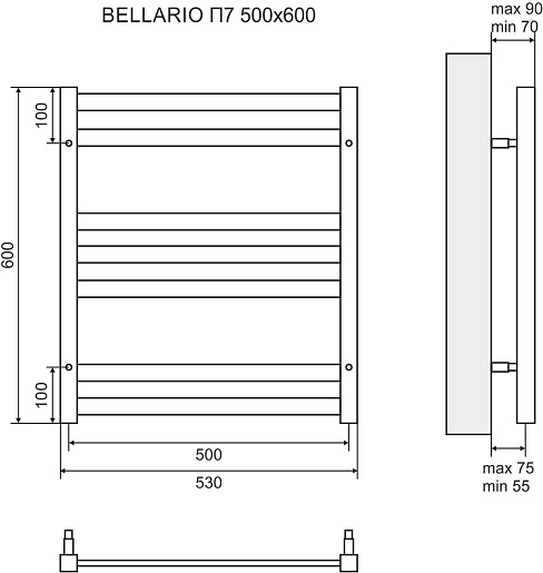 Полотенцесушитель электрический Bellario П7 500x600 черный - арт. LM68607EBL.