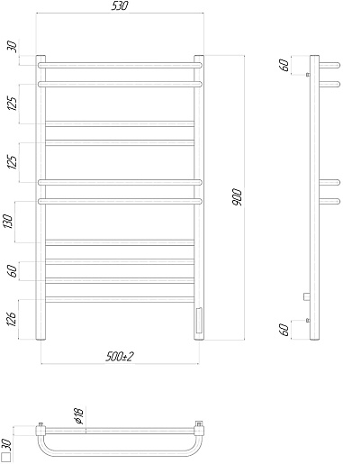 Полотенцесушитель электрический Linara П10 500x900 R хром - арт. LM04910Z.