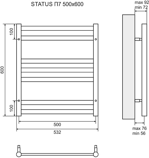 Полотенцесушитель электрический Status П7 500x600 хром - арт. LM44607E.