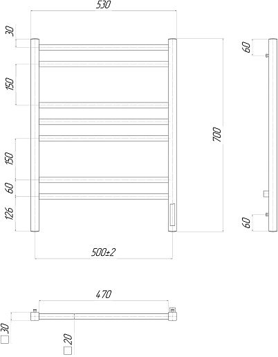 Полотенцесушитель электрический Unit П7 500x700 R хром - арт. LM45707Z.