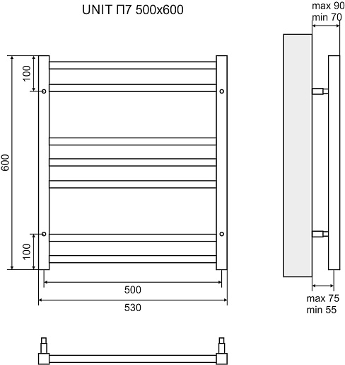 Полотенцесушитель водяной Unit П10 500x800 черный - арт. LM45810BL.