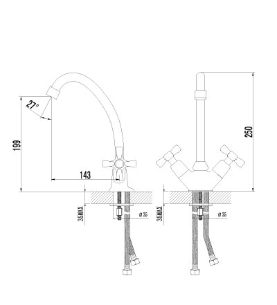 - поворотный излив 143 мм