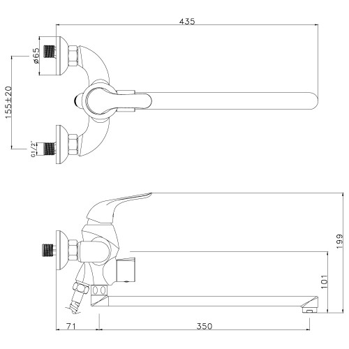 - Аксессуары- шланг 1.5 м., настенное поворотное крепление, 1-функциональная лейка