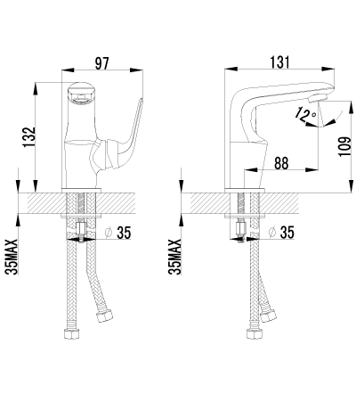 - фиксированный излив 88 мм