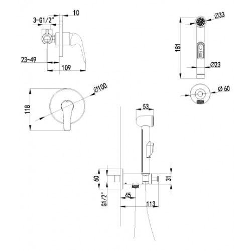 - Аксессуары в комплекте: лейка для биде с нажимным механизмом, шланг 1,5 м