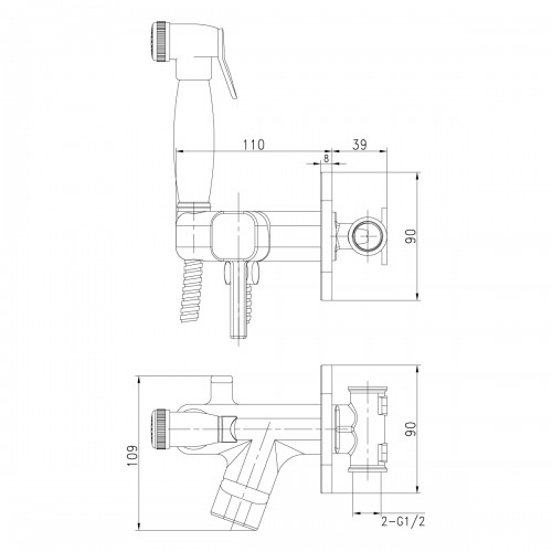 - Аксессуары в комплекте: лейка для биде с нажимным механизмом, шланг 1,5 м