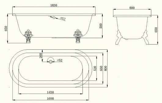 Magliezza Чугунная ванна Patricia 183x80 (ножки бронза)
