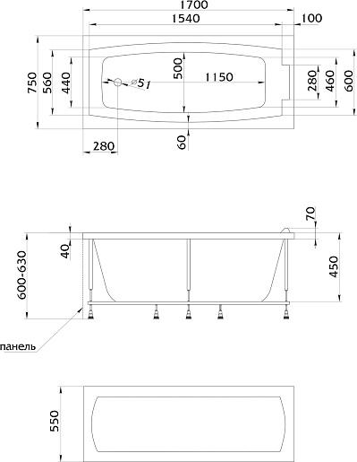 Акриловая ванна Marka One Aelita 170x75 - арт. 01ае1775.