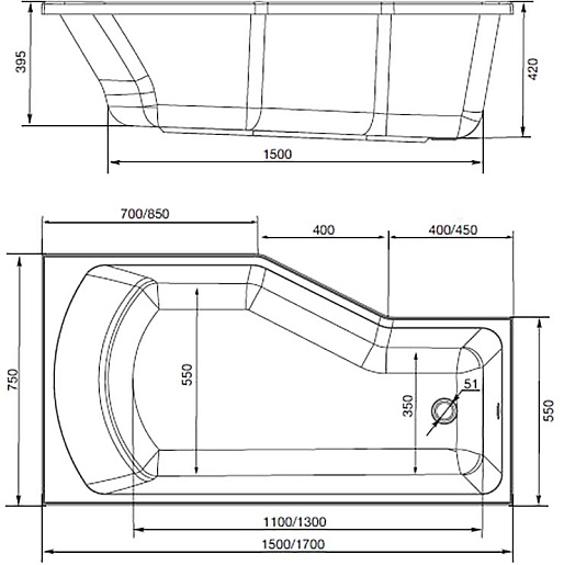 Акриловая ванна Marka One Convey 150x75 L - арт. 01кон1575л.