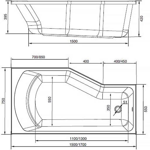 Акриловая ванна Marka One Convey 170x75 L - арт. 01кон1775л.