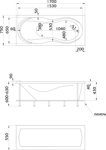 Акриловая ванна Marka One Enna 170x75 - арт. 01эн1775.